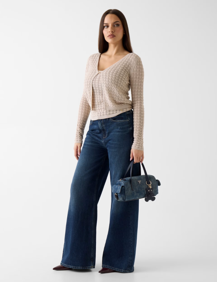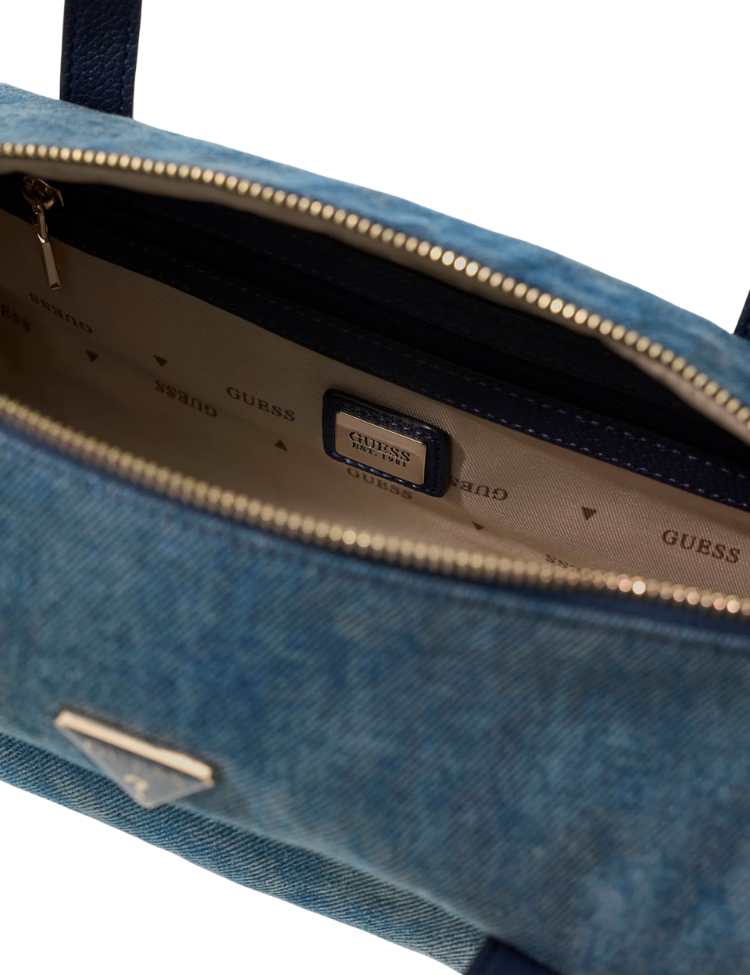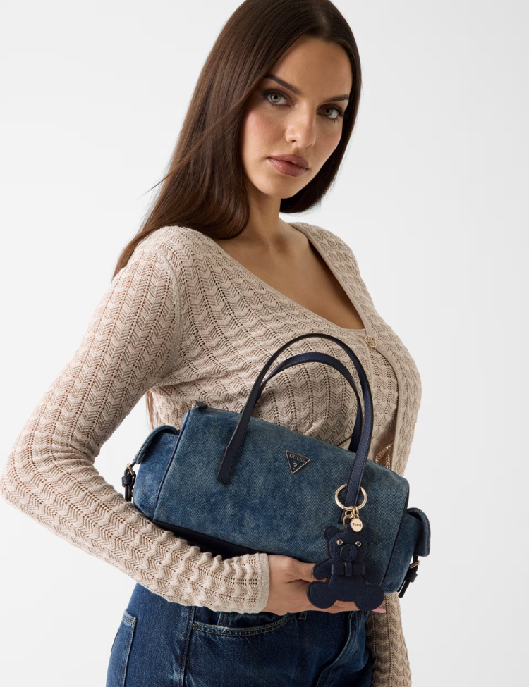 Deze denimtas draag je bij een gebreide trui en spijkerbroek voor een toonoptoonstyling, of juist bij een donkere broek om het blauwe accent te laten opvallen. Guess maakt van denim een toegankelijk statement door het te combineren met verfijnde details.