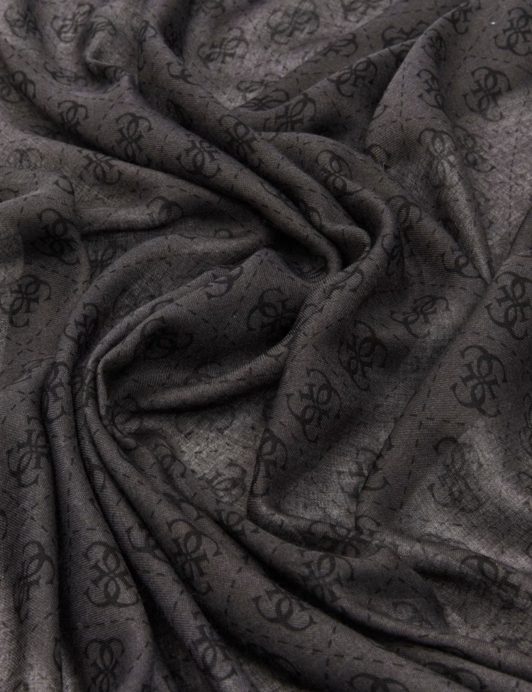 De Guess Katya Scarf in Coal Logo is een stijlvolle accessoire in een diepe, neutrale kleurstelling. De royale afmeting van 90x180 cm biedt veelzijdigheid in styling, terwijl de all-over 4G-monogramprint in ton-sur-ton zwart zorgt voor een luxe en herkenbare uitstraling.