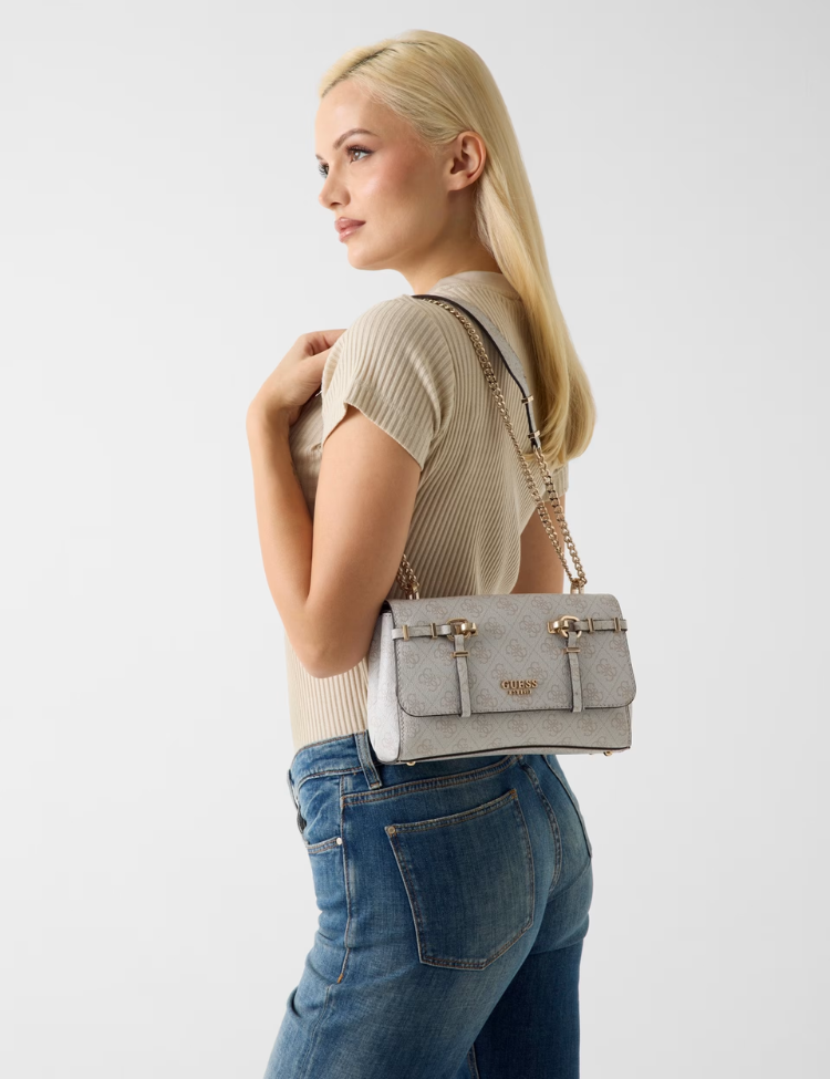 Guess Leona Logo Convrtbl Xbody Flap - Bone Logo