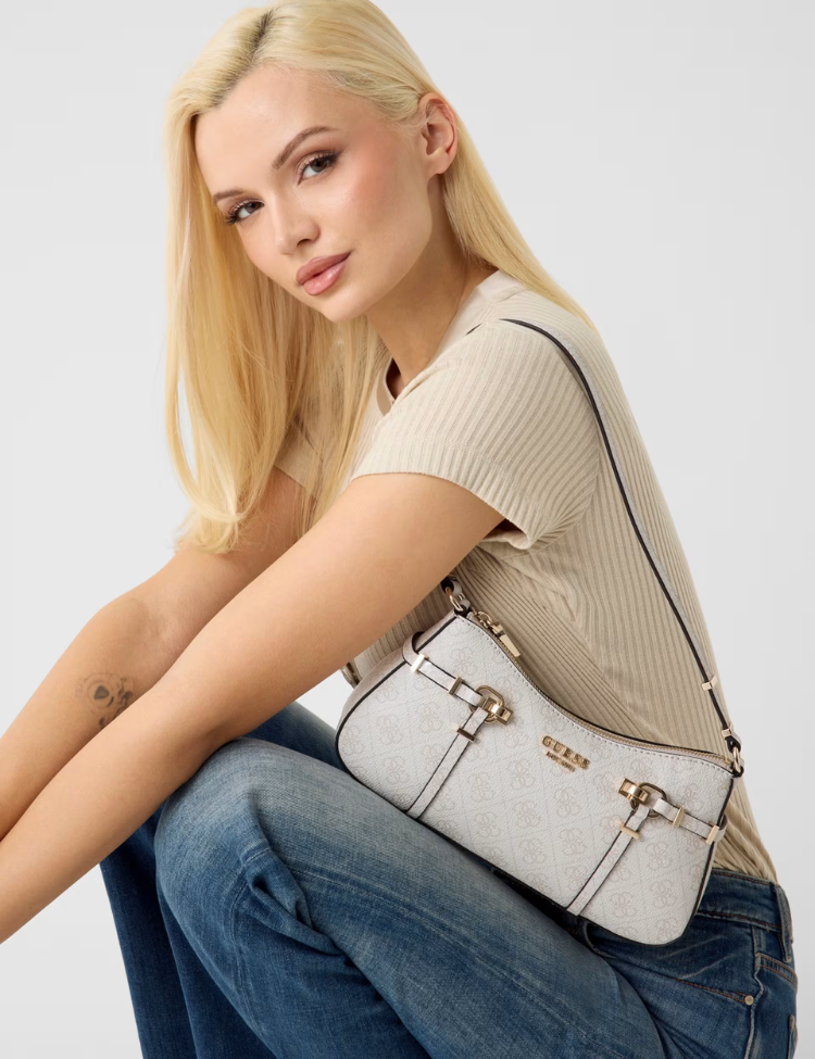 Guess Leona Logo Shoulder Bag Bone