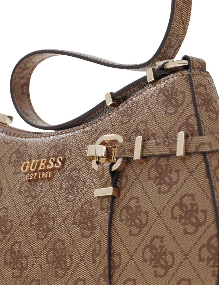 Guess Leona Logo Shoulder Bag - Latte Logo