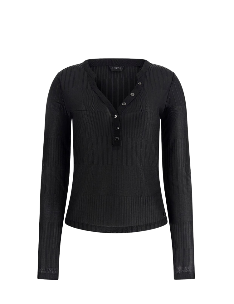 Guess LS Marilena Henley Top - Jet Black Tonal Foil