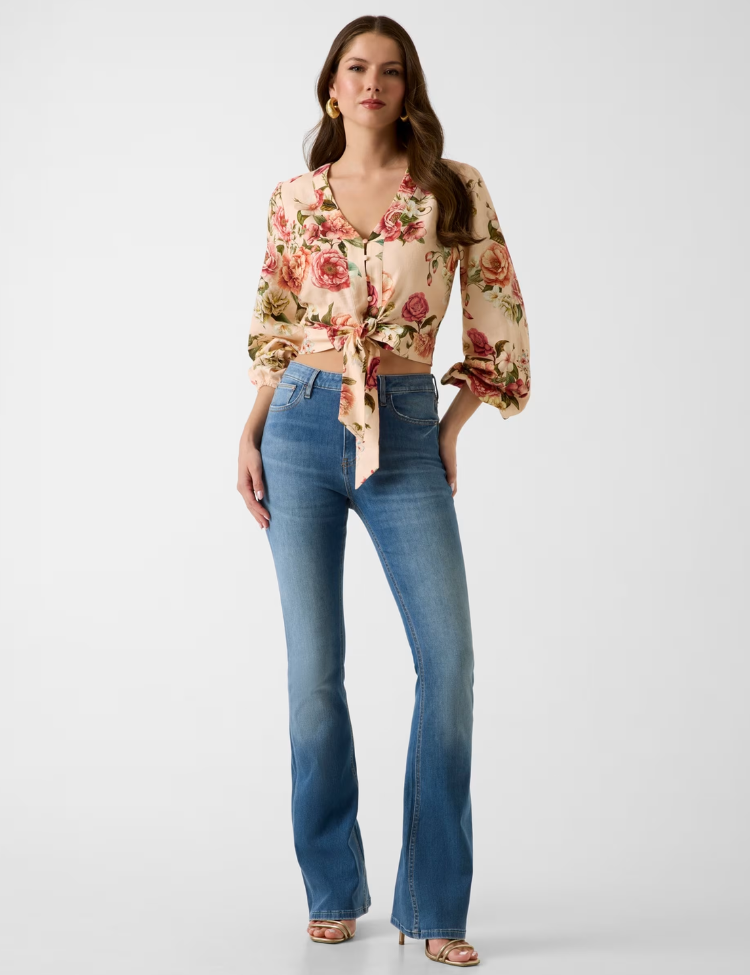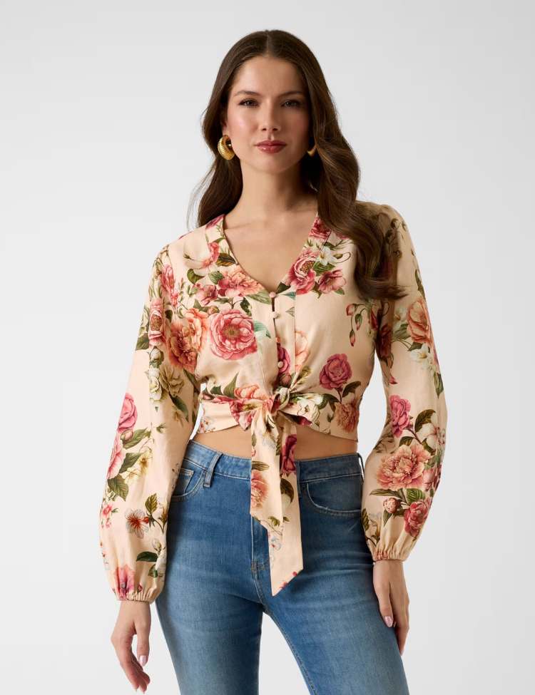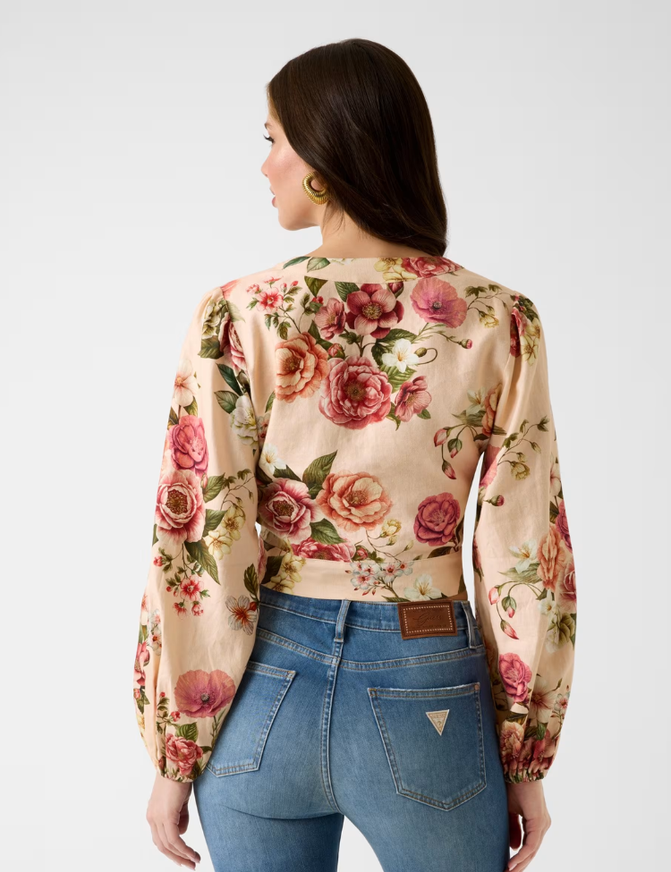 Guess LS Shirley Linen Top - Cosmic Peony Print