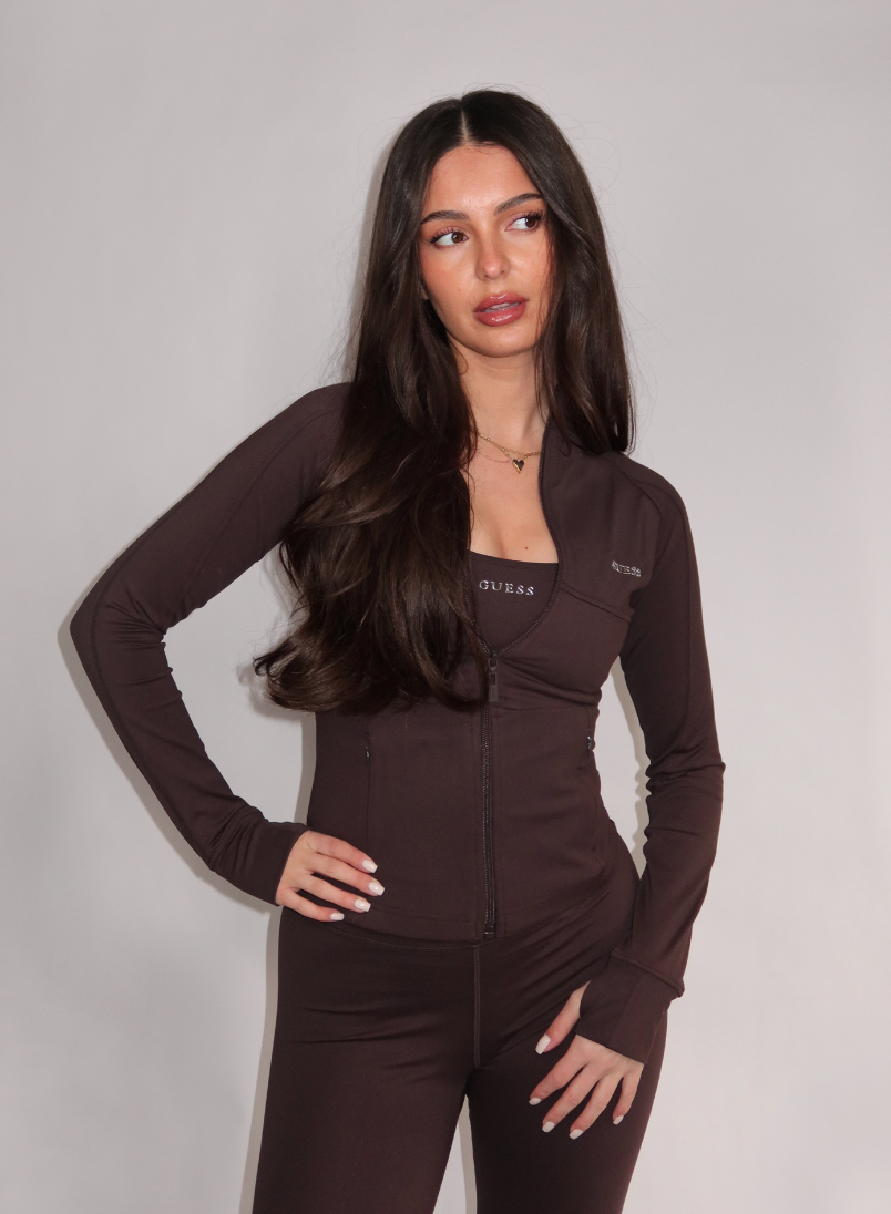 Guess Margot LS Zip Active Vest - Coffee Roast