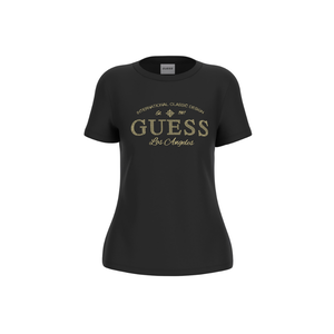 Voeg een vleugje glamour toe aan je dagelijkse look met het Guess Marina SS CN T-Shirt in Jet Black. Deze stijlvolle tee is voorzien van een opvallende goudkleurige GUESS Los Angeles print met sprankelende studs voor een luxueuze uitstraling. Gemaakt van een zachte, comfortabele katoenmix met een klassieke ronde hals en een regular fit pasvorm. Perfect te combineren met jeans of rokken voor een casual-chique stijl.