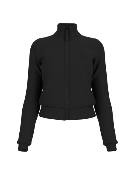 Dit zwarte vest van scubastof heeft een sportieve uitstraling met een opstaande kraag en een ritssluiting aan de voorzijde. Het gestructureerde materiaal geeft het vest body en houdt zijn vorm goed. Op de borst zie je een klein geborduurd driehoekslogo in ton sur ton. De boord aan de onderkant en bij de mouwen zorgt voor een nette afwerking. Het vest heeft een korte, taillerende pasvorm die net op de heup valt.