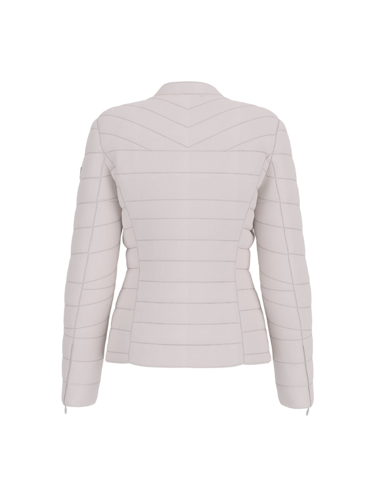Het Guess New Vona Stretch Jacket is een moderne, lichtgewicht tussenjas met een strak en vrouwelijk silhouet. De getailleerde pasvorm in combinatie met de horizontale en V-vormige stiksels accentueert je figuur op elegante wijze. Uitgevoerd in een zachte stretchstof in een stijlvolle lichtbeige tint, biedt dit jasje zowel comfort als bewegingsvrijheid.