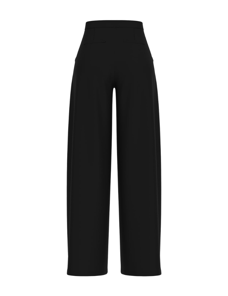 De Guess Olympe Wide Leg Pants in Jet Black combineert moderne elegantie met dagelijks comfort. Deze broek is vervaardigd uit een soepele, licht stretchende stof die mooi valt en zorgt voor een vloeiende pasvorm. Het wijde, recht vallende silhouet creëert een krachtige en gestroomlijnde look die zowel casual als gekleed te stylen is.