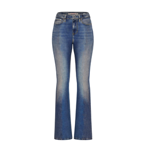 De Guess Sexy Flare in de kleur Ballade is een klassieke flared jeans met een moderne uitstraling. Deze damesbroek is gemaakt van stretchdenim dat zorgt voor comfort en bewegingsvrijheid. De hoge taille en uitlopende pijpen creëren een flatterend silhouet, ideaal om te combineren met hakken of sneakers. De jeans is voorzien van een vijfzakkenmodel, ritssluiting met knoop en het kenmerkende GUESS-logo op de achterzak.
