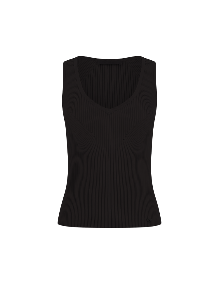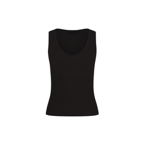 Deze zwarte tanktop van Guess combineert een geribbelde structuur met een ronde halslijn. Het mouwloze model heeft een nauwsluitende pasvorm die mooi aansluit. De fijne ribstructuur loopt verticaal over het gehele top en zorgt voor een subtiele textuur. Het zwarte kleurenpalet maakt de top veelzijdig te combineren. De ronde hals geeft een klassieke uitstraling.