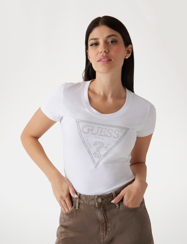 Guess SS CN Shiny Triangle T-Shirt - Pure White