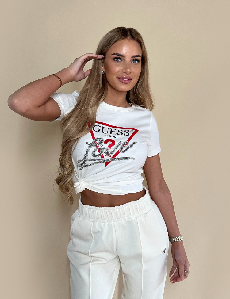 Guess SS CN Triangle Love T-Shirt - Cream/White