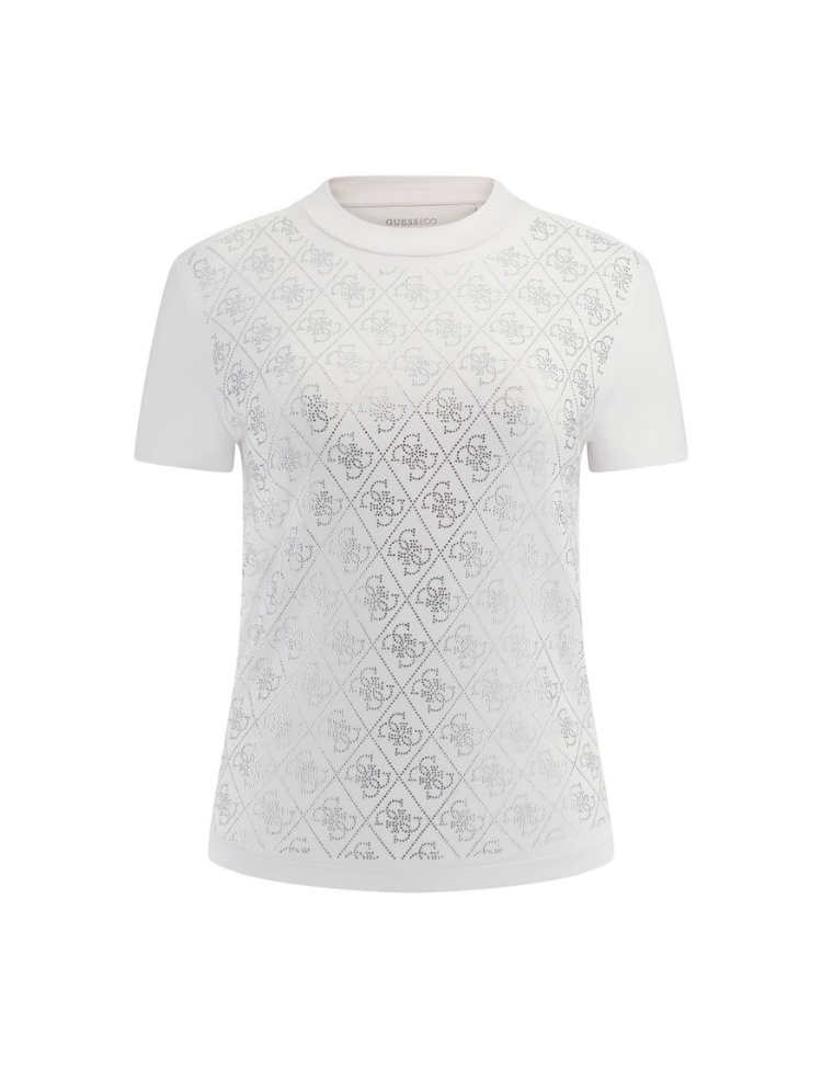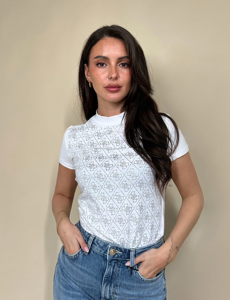 Guess SS Mock Neck All Over 4g Tee - Pure White