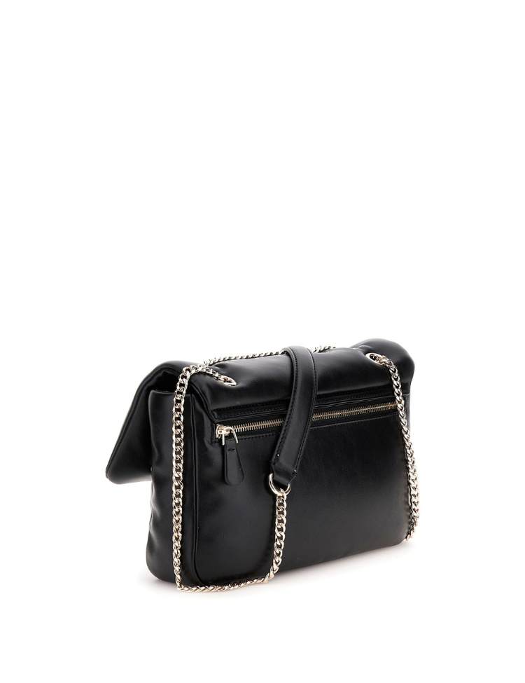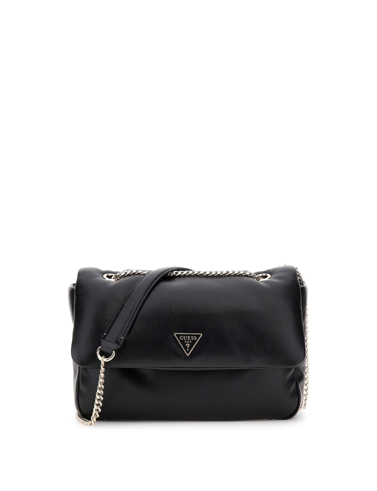De Guess Sunetra Convertible Xbody Flap - Black is een elegante crossbodytas met een moderne en veelzijdige uitstraling. Gemaakt van hoogwaardig kunstleer met een zachte glans, ideaal voor dagelijks gebruik of een avond uit. De tas is voorzien van een flap met magnetische sluiting, een achtervak met ritssluiting en een verstelbare ketting-schouderband met leren detail voor extra draagcomfort. Binnenin vind je voldoende ruimte voor je essentials en een stijlvol Guess-logo in goudkleurige hardware dat de tas een luxe afwerking geeft.