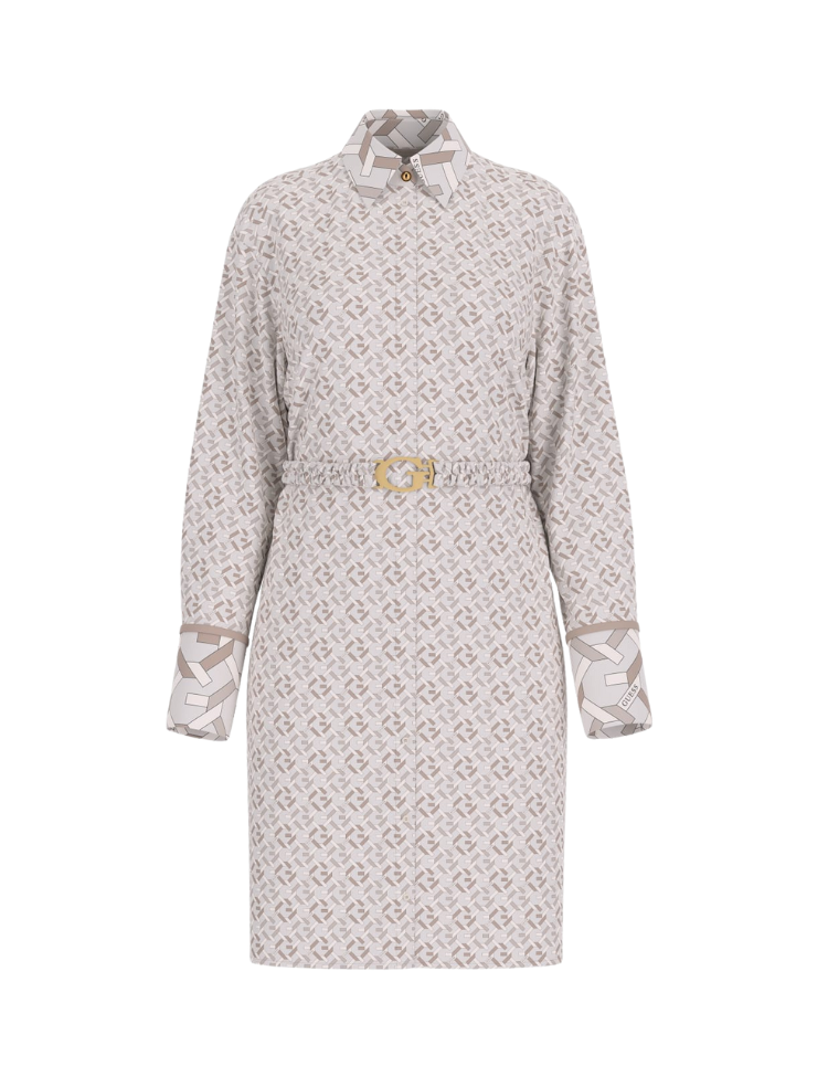 De Guess Veronica Logo Dress is een elegante, soepelvallende jurk gemaakt van glanzende stof. De all-over logoprint en het bijpassende riempje geven deze jurk een stijlvolle en verfijnde uitstraling. Perfect voor zowel casual als chique gelegenheden, met een pasvorm die je silhouet prachtig benadrukt
