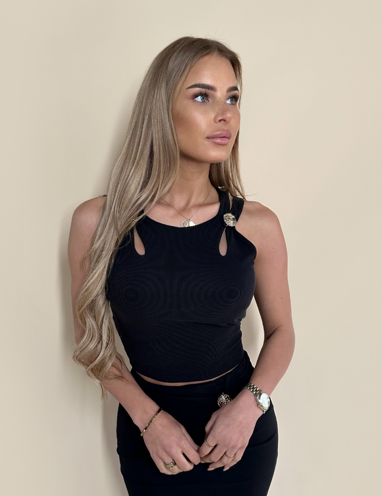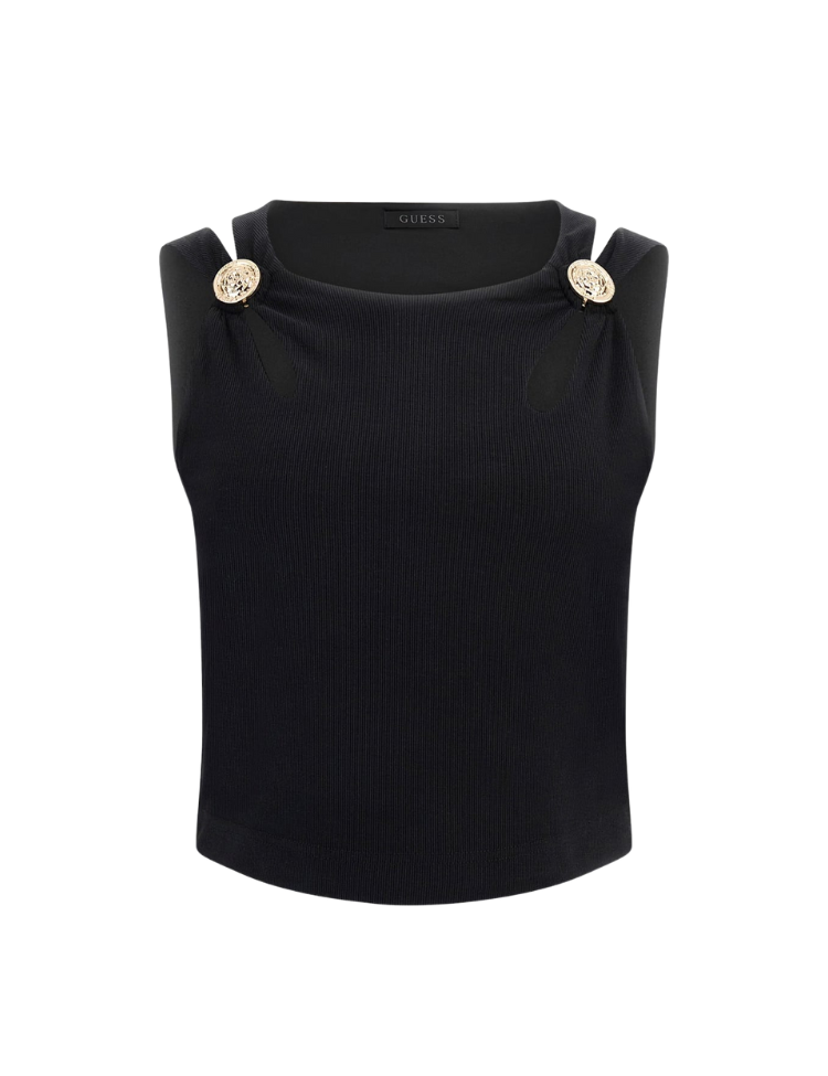 De Guess Zama Cut Out Details Top is een stijlvolle cropped top met verfijnde knoop- en cut-outdetails op de schouders. Het ontwerp met micro ribbelstructuur zorgt voor een moderne en veelzijdige look. Gemaakt van een modal blend, biedt de top uitzonderlijke zachtheid, duurzaamheid en draagcomfort.