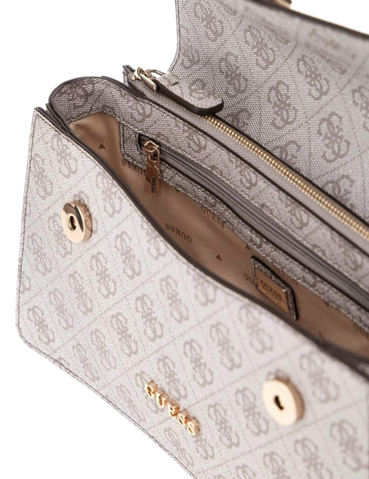 De Guess Zamira Hobo Bag is hét accessoire voor de vrouw die houdt van een stijlvolle, chique uitstraling met een moderne twist. De tas combineert luxe met comfort dankzij het gestructureerde silhouet, de rijke afwerking met monogramprint en de verfijnde kettingdetails op de schouderriem. De dubbele schouderband met goudkleurige schakels voegt een vleugje glamour toe aan je outfit.