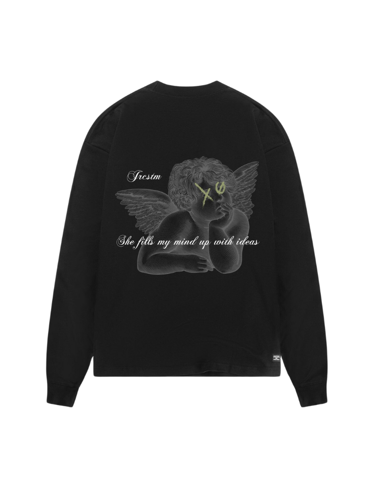Het JorCustom Loveangel Longsleeve T-Shirt is bedrukt op de achterkant. Het T-shirt heeft lange mouwen en valt soepel. Het shirt is afgewerkt met het Jorcustom logo klein op de borst