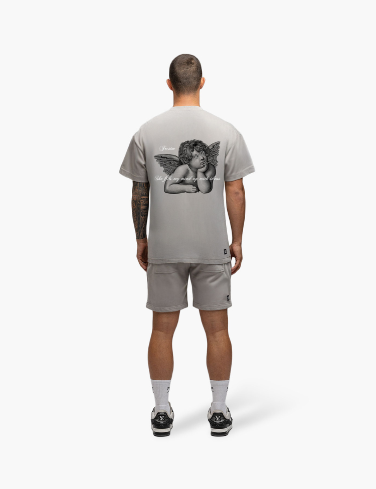 Comfort ontmoet karakter met de Angel Terry Short van JorCustom in stijlvol Grey. Deze short is ontworpen voor de moderne man die houdt van een relaxed silhouet met een statement. Gemaakt van zacht French terry katoen voor een soepele en ademende fit – perfect voor zonnige dagen of een laidback vibe.
