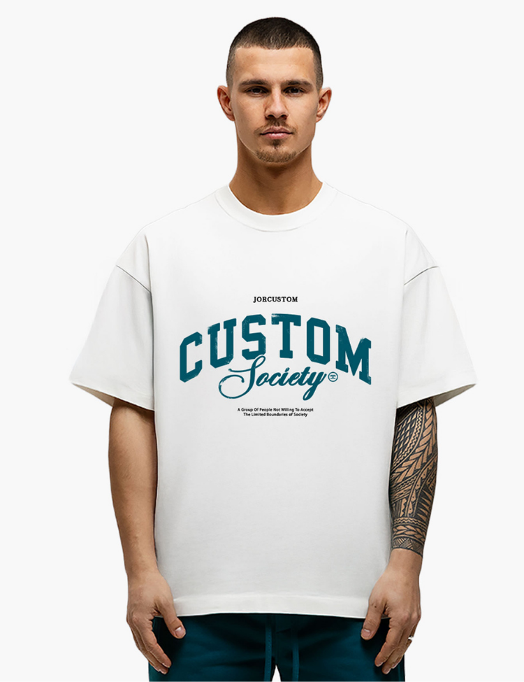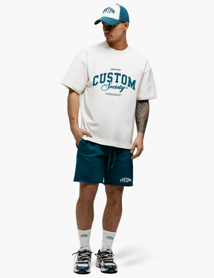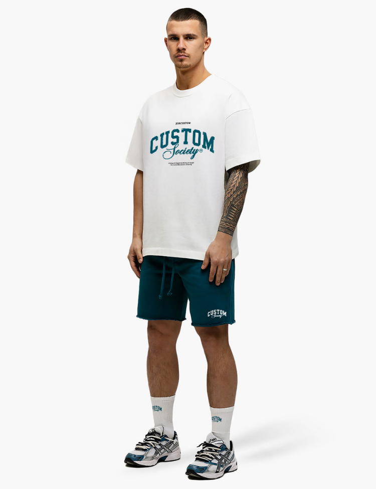 JorCustom CustomSociety Summer Loose Fit T-Shirt - White/Teal