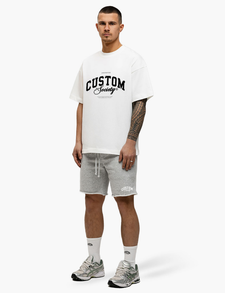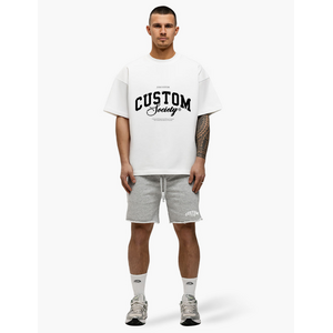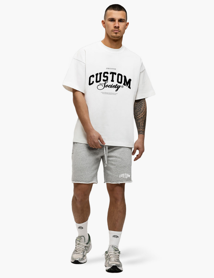 JorCustom CustomSociety Summer Loose Fit T-Shirt - White-Grey Melange