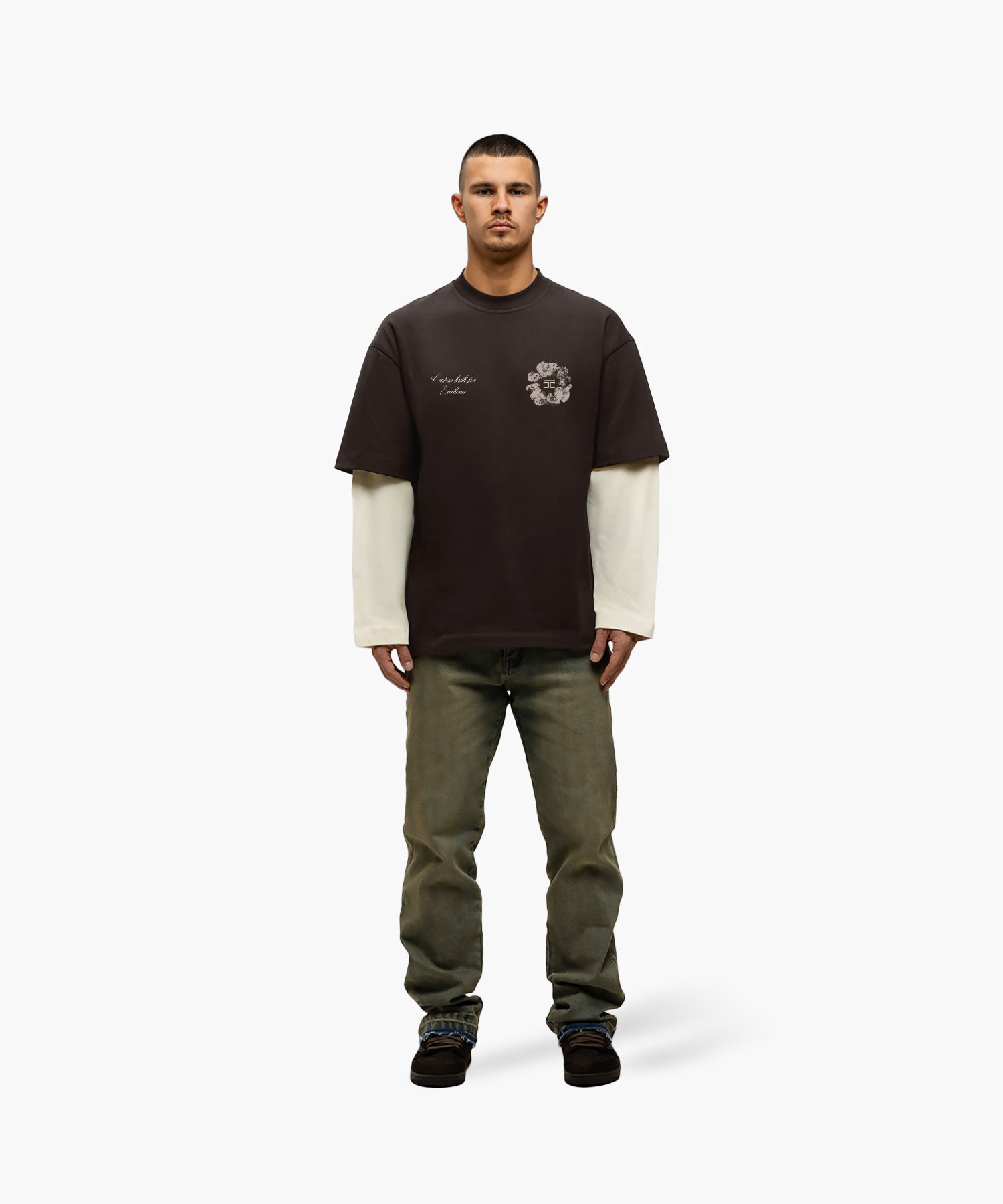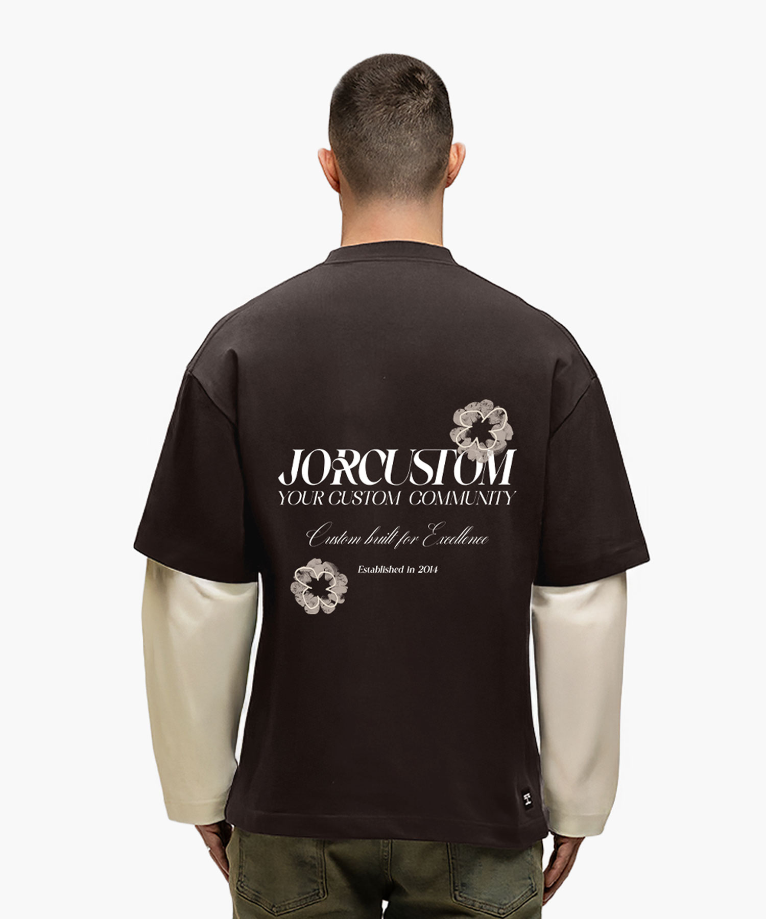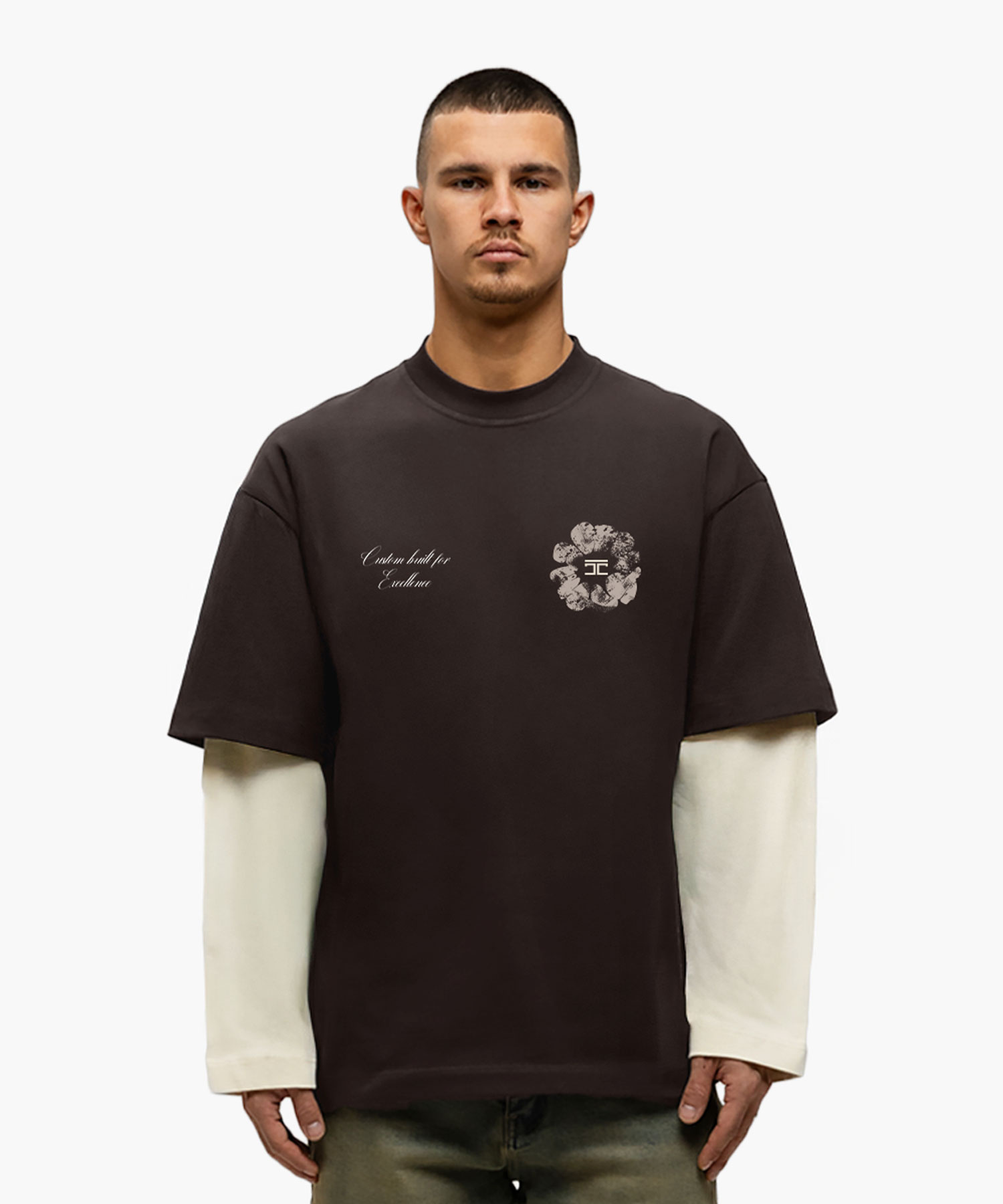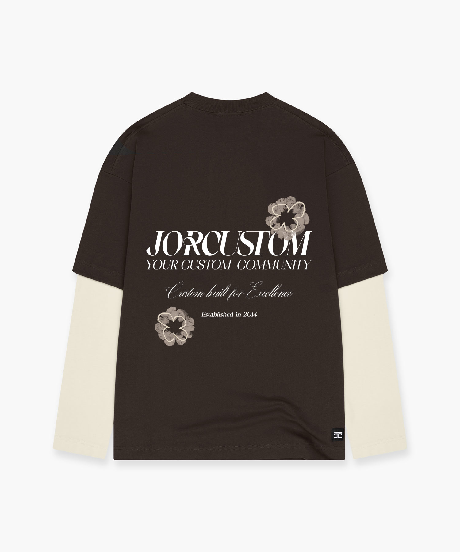 JorCustom Flowers Double Layered Longsleeve T- - Brown-Creme