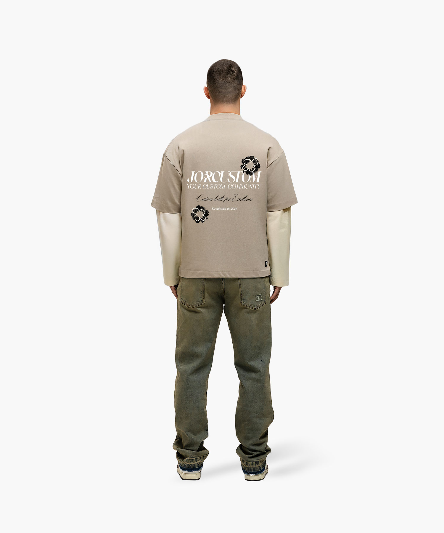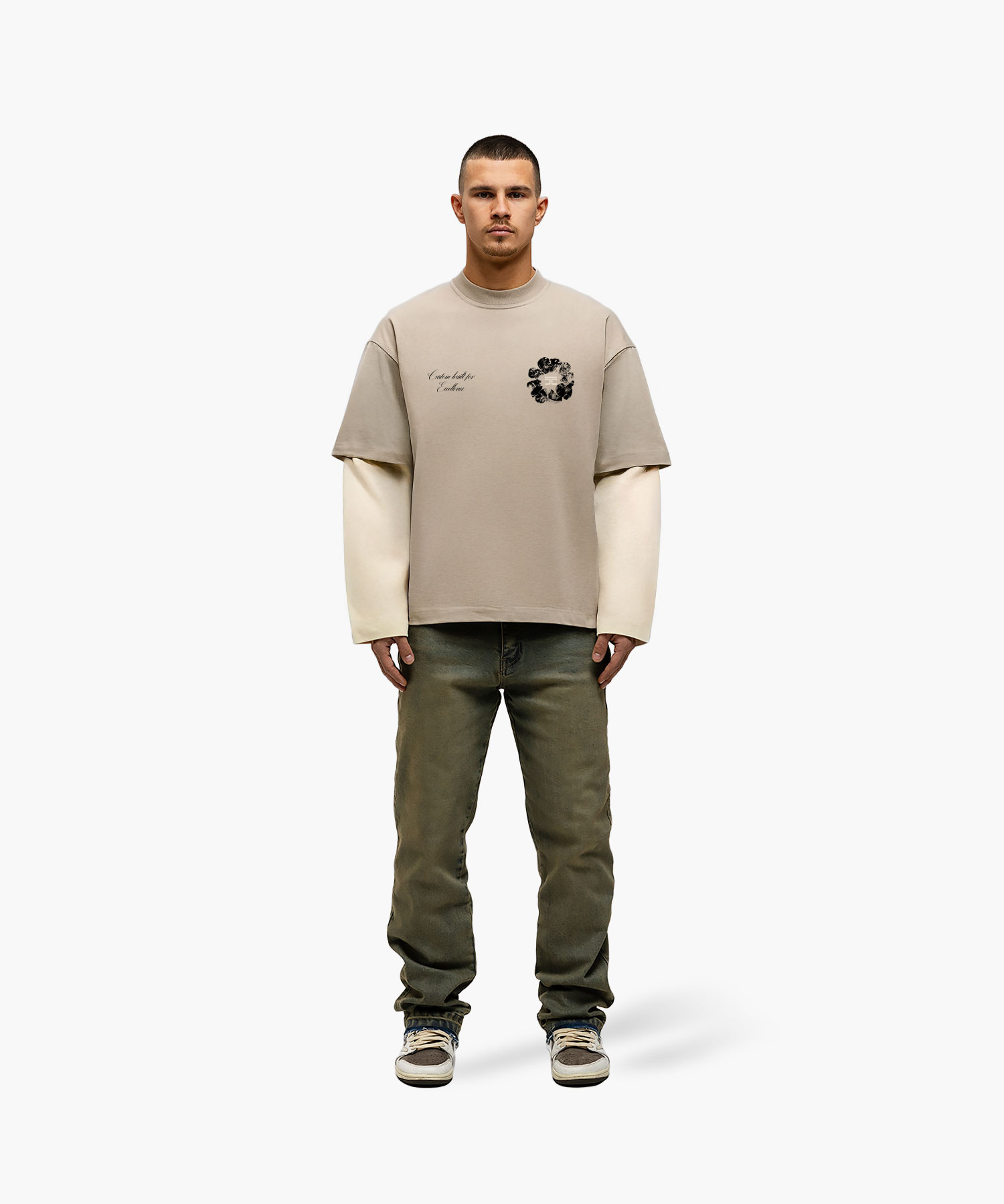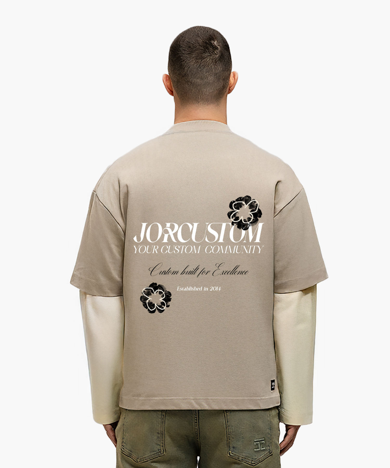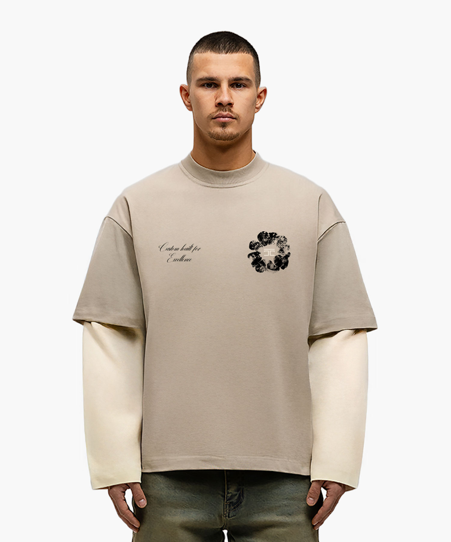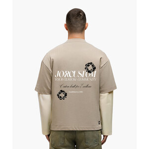 JorCustom Flowers Double Layered Longsleeve T- - Taupe-Creme