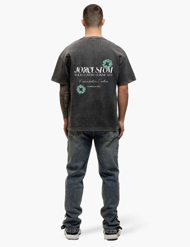 JorCustom Flowers Loose Fit T-Shirt - Acid Grey