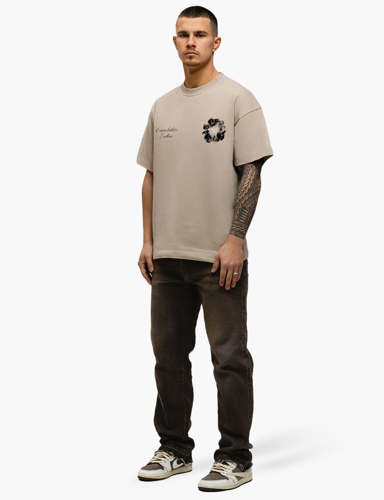 JorCustom Flowers Loose Fit T-Shirt - Taupe