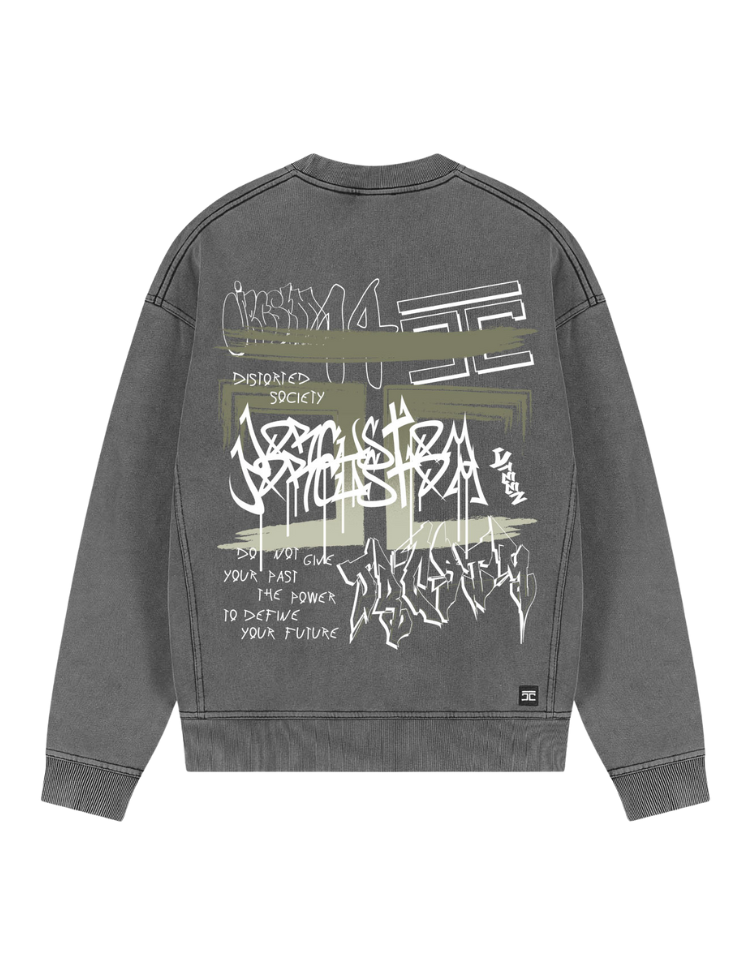 JorCustom Graffiti Fleece Crewneck Sweater - Acid Grey