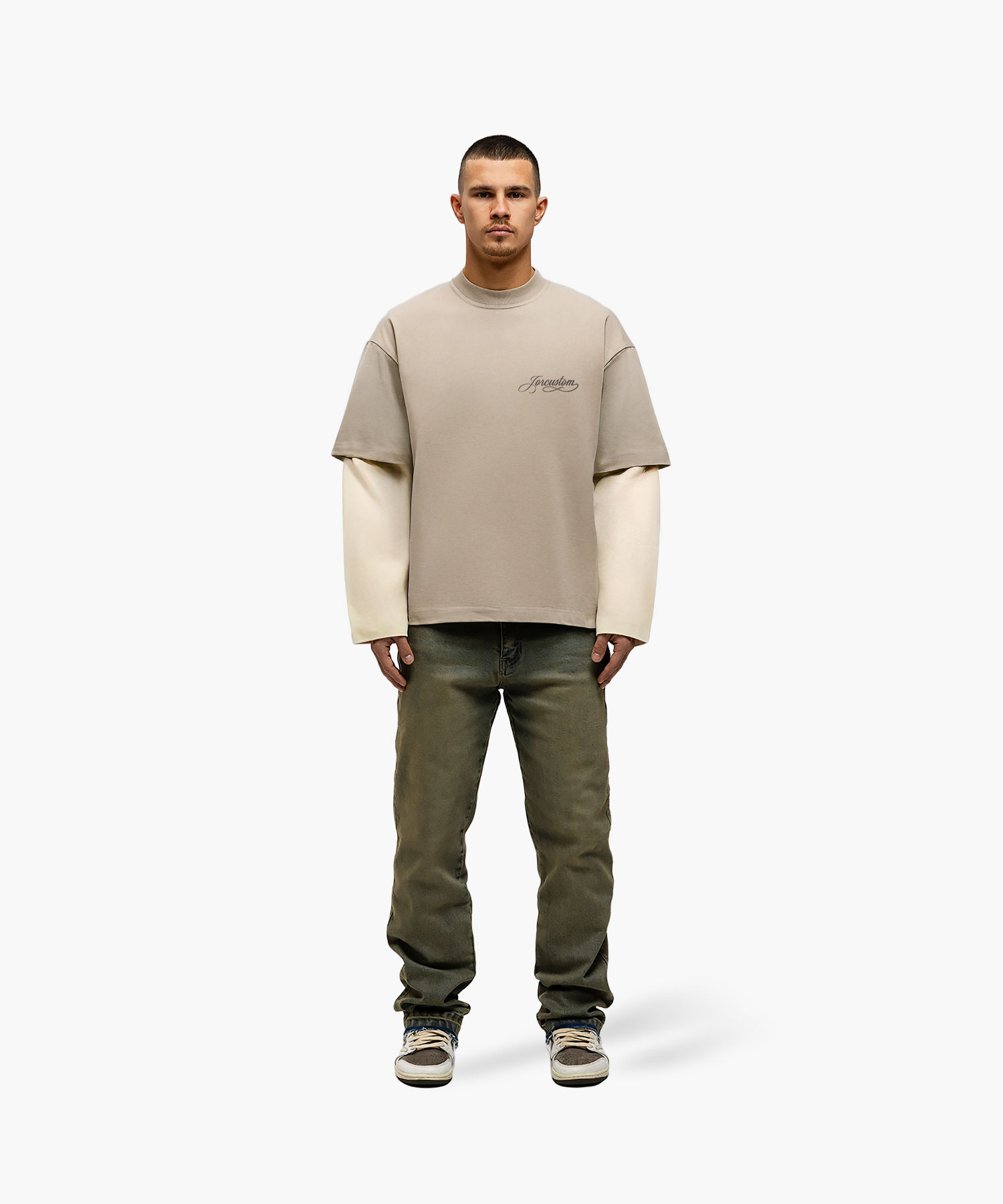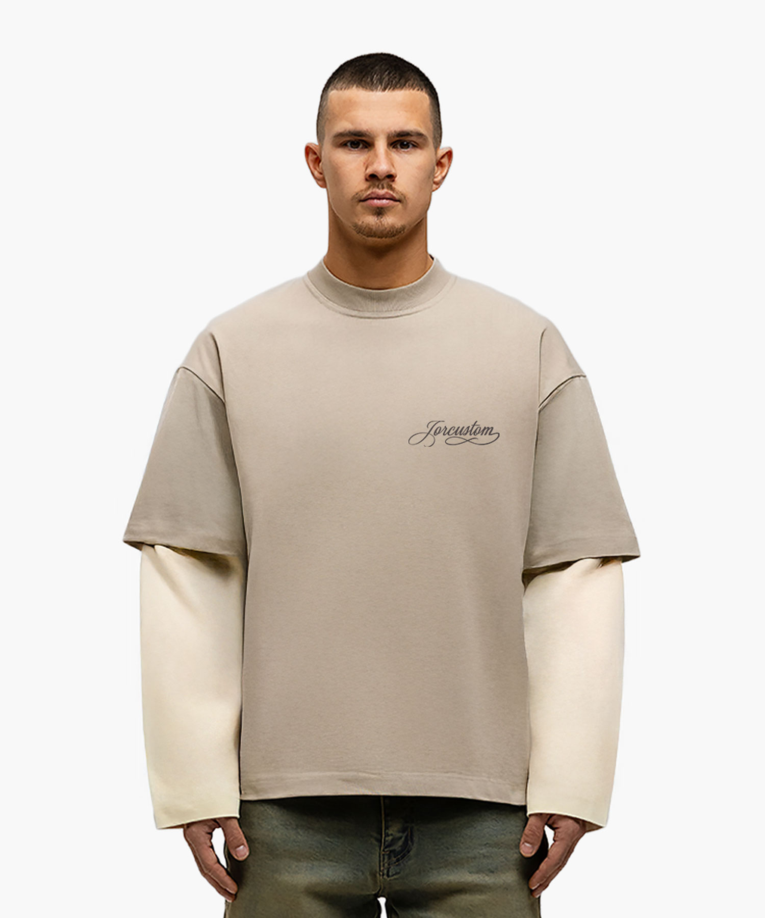 JorCustom Handscript Double Layered Longsleeve - Taupe-Creme