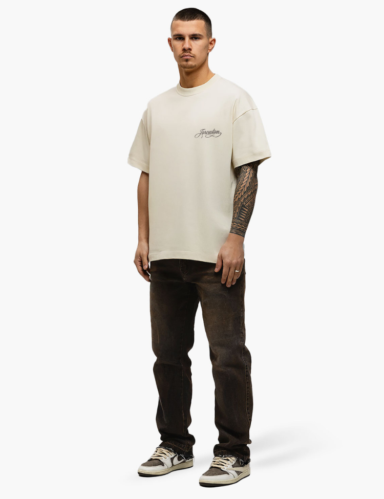 JorCustom Handscript Loose Fit T-Shirt - Creme