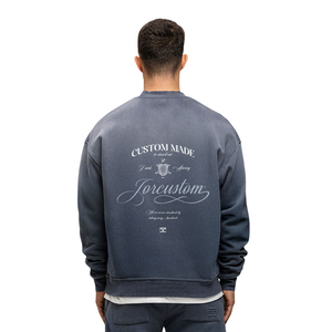 Deze crewneck sweater van JorCustom heeft een sunfade effect dat van donkerblauw naar lichter verloopt. De oversized fit zorgt voor een relaxte pasvorm met dropped shoulders. Op de rug staat een grote tekstprint met "Custom Made" en "Jorcustom" in sierlijke letters. De voorkant heeft een kleine "Jorcustom" tekst op borsthoogte. Ribboorden bij de hals, mouwen en zoom geven de trui een nette afwerking. Het dikke sweatstof materiaal voelt comfortabel aan en is perfect voor het tussenseizoen.