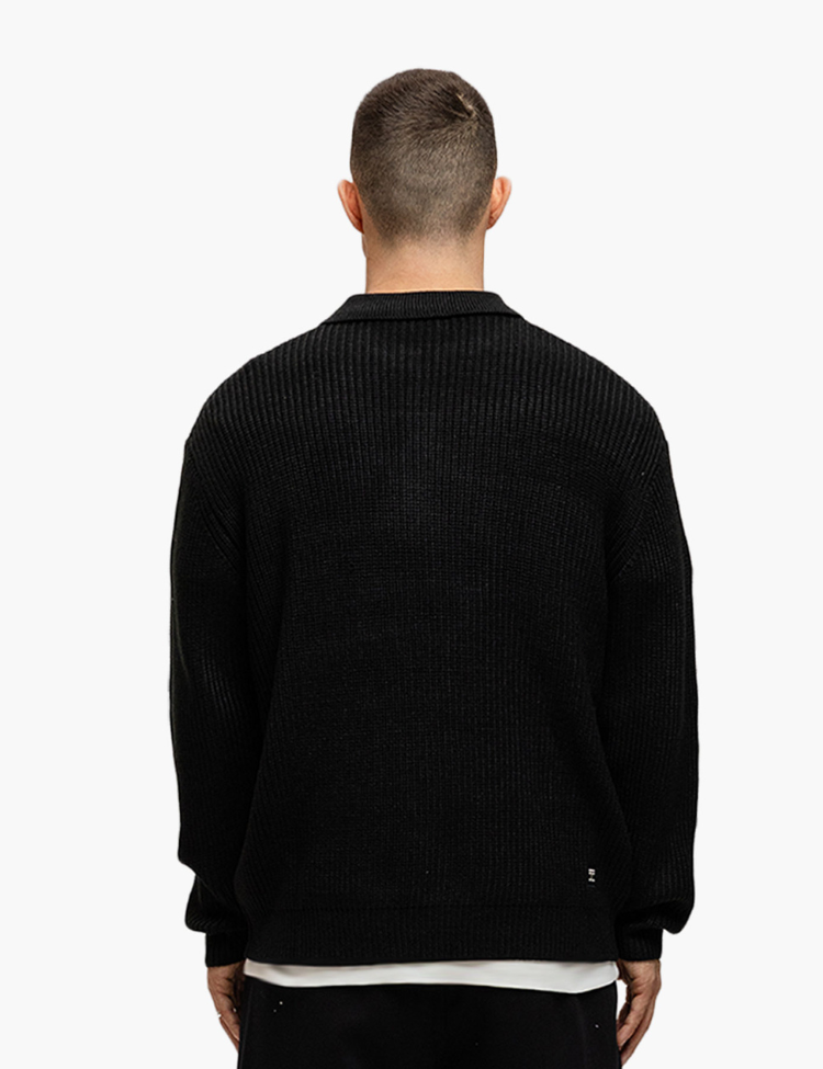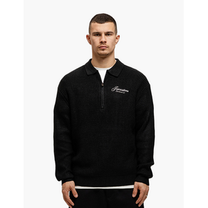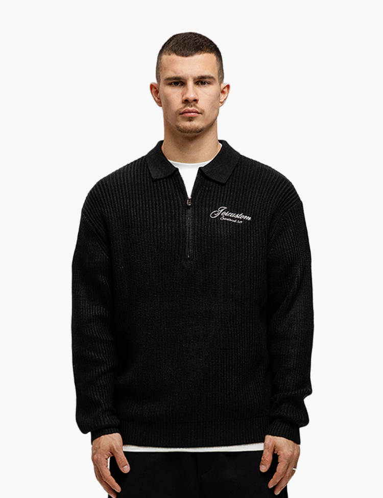 JorCustom Heritage Heavy Knit QuarterZip Polo - Black