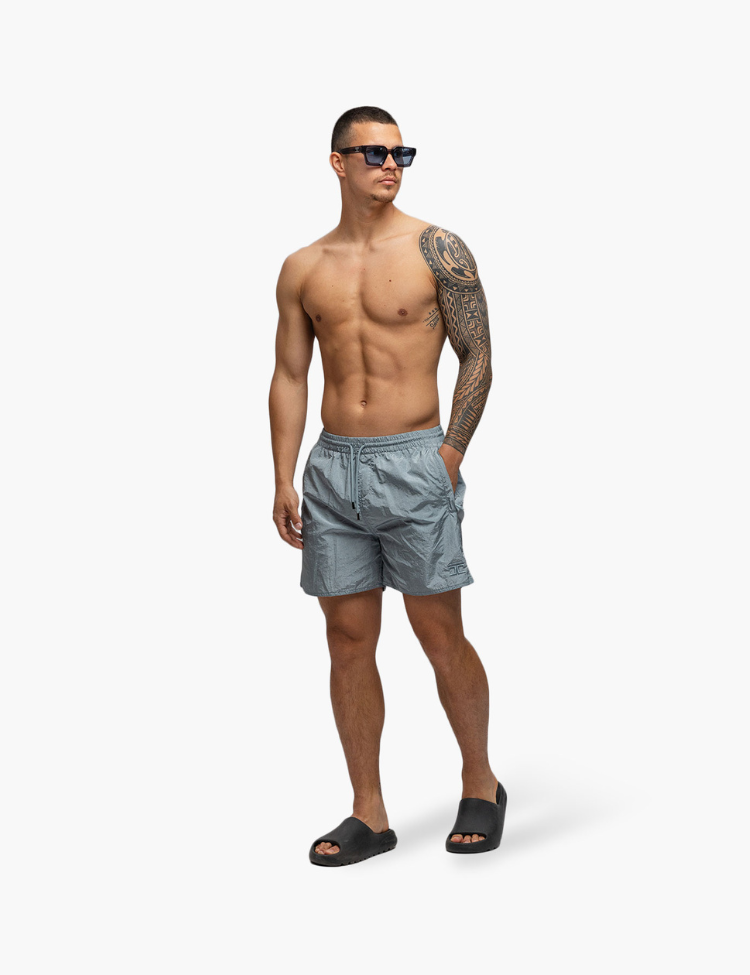 Til je zomerstijl naar een hoger niveau met de Icon Swimshort van JorCustom in de verfrissende tint Bluette. Deze swimshort combineert comfort met een stijlvolle, minimalistische uitstraling dankzij het subtiele JorCustom-logo op de pijp en het gladde, licht glanzende materiaal.