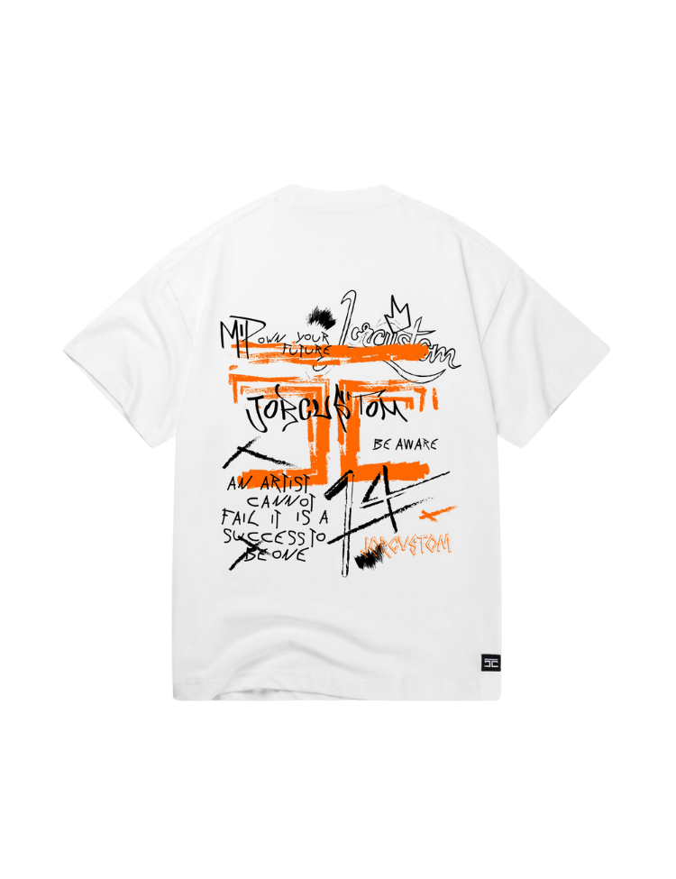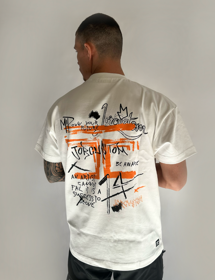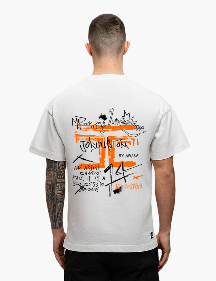 De loose fit geeft je maximale bewegingsvrijheid en comfort, ideaal voor lange dagen in de stad of op het terrein. De opvallende artistieke print op de rug spreekt boekdelen: expressief, krachtig en volledig in lijn met JorCustom’s visie op originaliteit en streetwear. De zachte katoenkwaliteit zorgt voor een lichte feel en duurzame look.