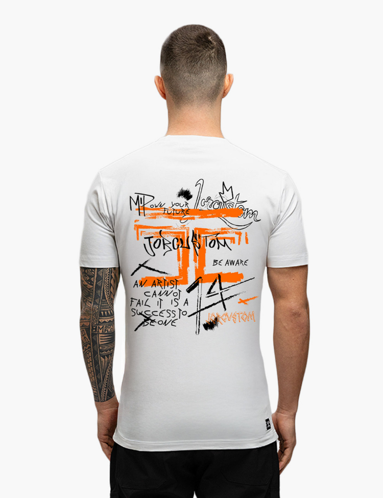 Gemaakt van premium katoen voelt het shirt zacht en luchtig aan. De slim fit zorgt voor een nauwsluitende, gestroomlijnde pasvorm die stijlvol blijft in elke situatie. De opvallende Artist-graphic op de rug is een ode aan zelfexpressie, design en identiteit – een kernwaarde van JorCustom. Het resultaat is een draagbaar kunstwerk dat net zo comfortabel is als uniek.