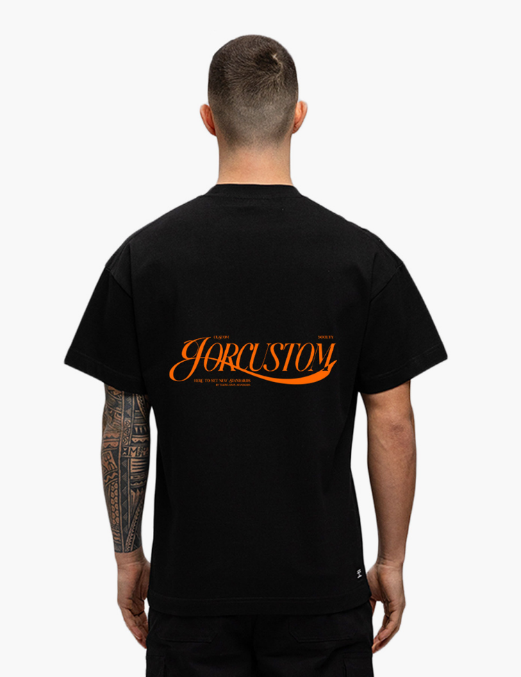 De wijde pasvorm geeft een nonchalante uitstraling, perfect voor festivals, chill-dagen of laag-over-laag styling. Op de rug staat het iconische JorCustom-script in groot formaat: krachtig, herkenbaar en met attitude. Gemaakt van zacht katoen en ontworpen met bewegingsvrijheid in gedachten, is deze tee gemaakt voor comfort op Koningsdag én daarbuiten.