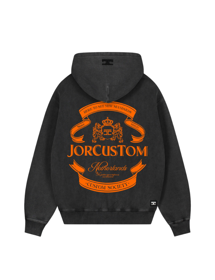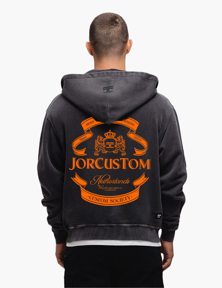 Maak een krachtig statement dit Koningsdagseizoen met de limited edition KD25 Script Zip Hoodie in helder oranje van JorCustom. Deze opvallende hoodie heeft een comfortabele regular fit en is gemaakt van een zachte katoenmix die garant staat voor langdurig draagcomfort, ook tijdens frisse lentedagen.