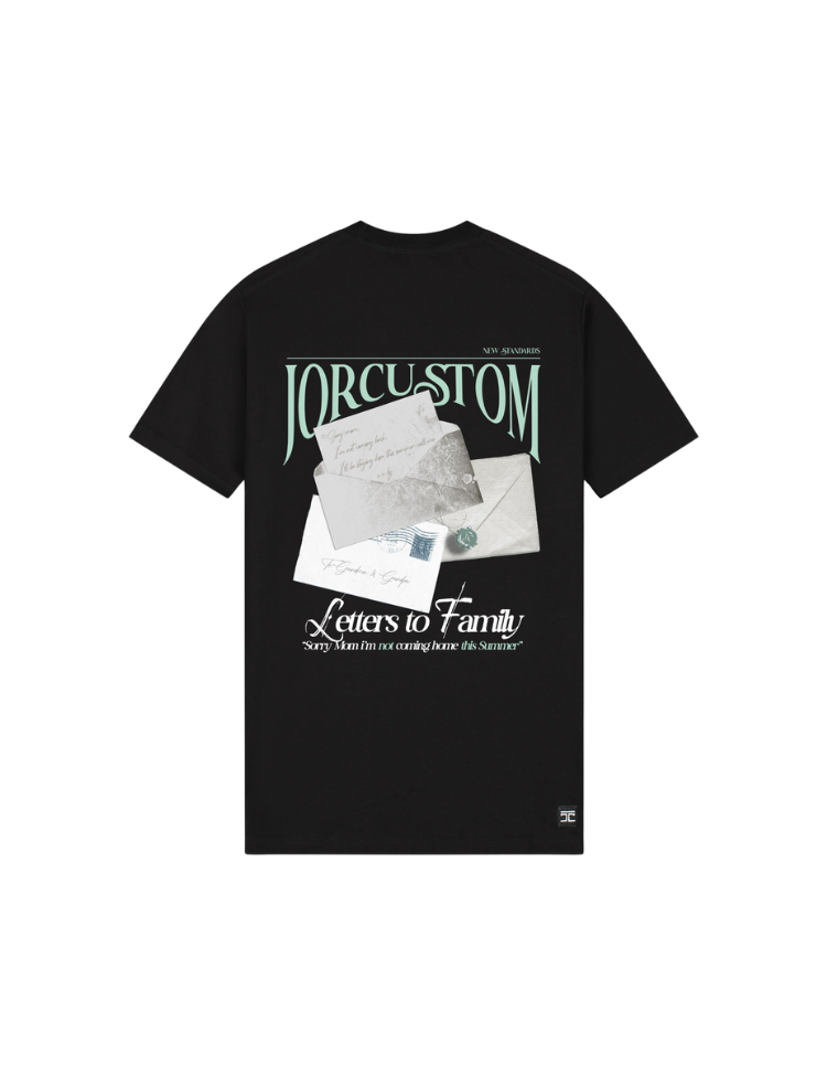 Het JorCustom Letters 2 Family T-Shirt in zwart is een slim fit model met een rugprint die behoort tot de herkenbare JorCustom-stijl. Het shirt is gemaakt van katoen met elastaan, waardoor het nauwsluitend draagt en toch voldoende bewegingsvrijheid biedt. Deze uitvoering in een tijdloze kleur is eenvoudig te combineren met een short of cargo voor een verzorgde, casual look.