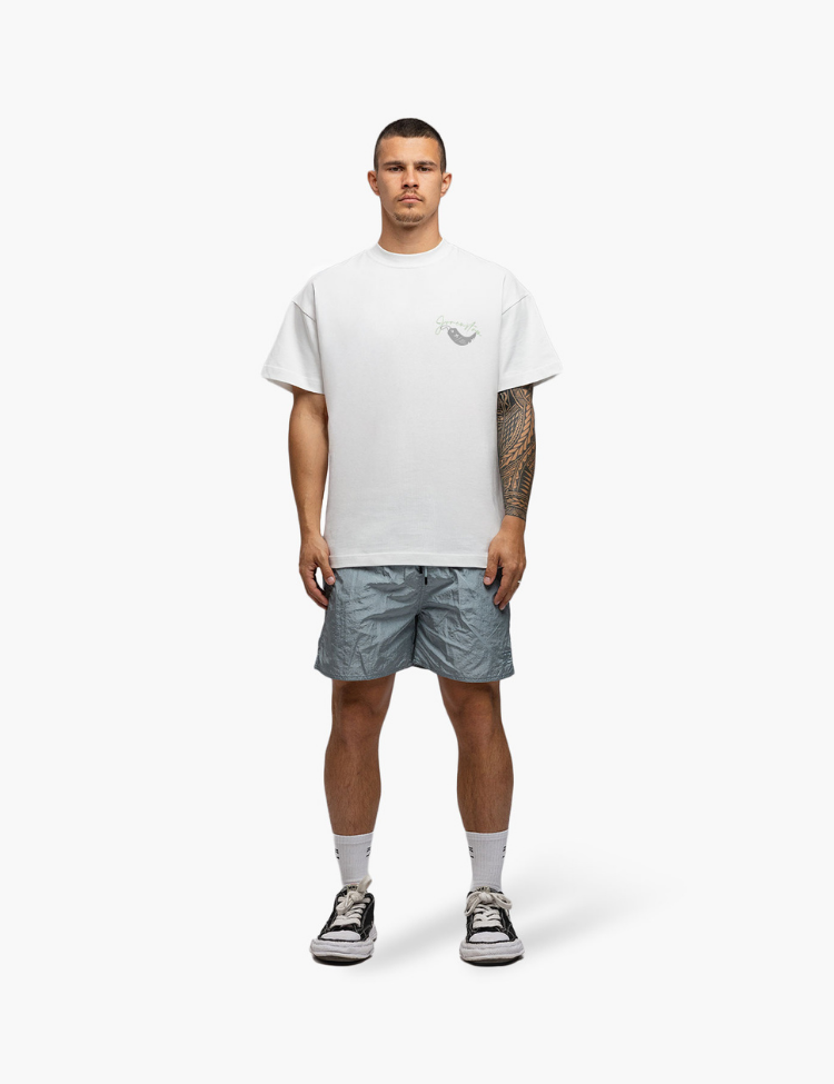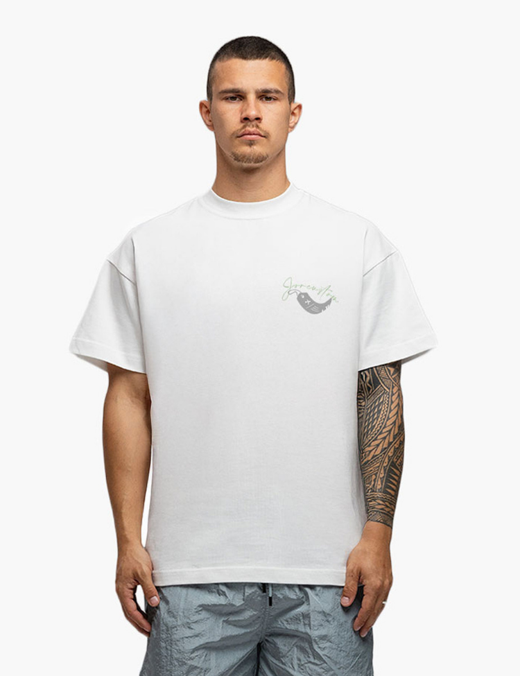 Deze oversized T-shirt is vervaardigd van 100% katoen met een stevige kwaliteit en zachte feel. De ruime mouwlengte en de losse pasvorm zorgen voor een comfortabele en ontspannen fit. Het model heeft een klassieke ronde hals en is afgewerkt met een opvallende rugprint. Draag ‘m met een cargobroek of short voor een casual streetstyle look.