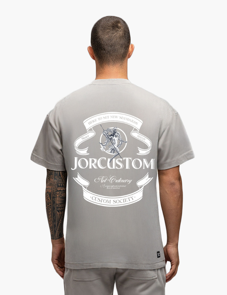 Het subtiele JorCustom-label onderaan maakt het helemaal af. Perfect om te combineren met denim, shorts of joggers voor een all day everyday outfit die indruk maakt.