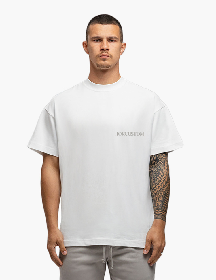 Het Ribbon Loose Fit T-Shirt van JorCustom in White/Grey maakt een krachtig statement met een klassieke twist. De oversized pasvorm geeft je de ultieme streetwear look, terwijl de zachte katoenmix zorgt voor all-day comfort.
