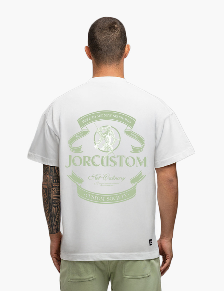 JorCustom Ribbon Loose Fit T-Shirt - White/SageGreen