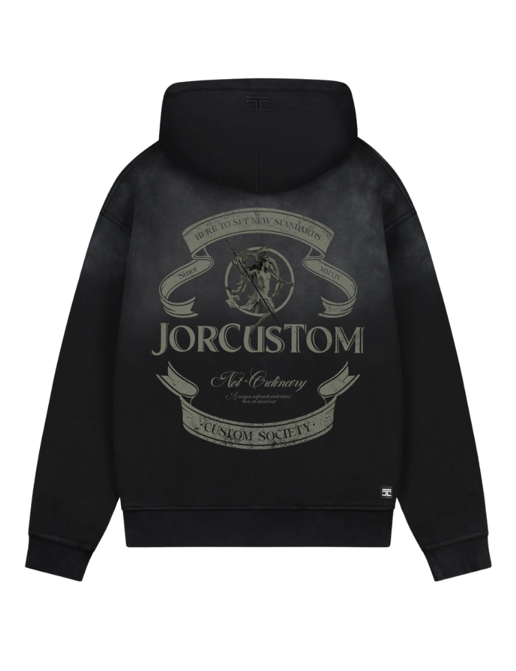 JorCustom Ribbon Sunfade Zipped Hoodie - Black