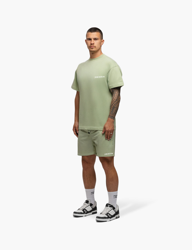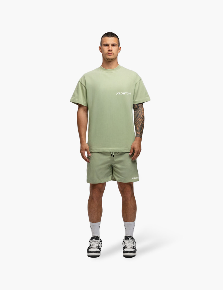 De Ribbon Swimshort van JorCustom in de trendy kleur Sage Green is dé perfecte combinatie van comfort en stijl voor de zomer. Deze zwemshort is ontworpen met een regular fit en voorzien van een elastische tailleband met koordsluiting voor een perfecte pasvorm.