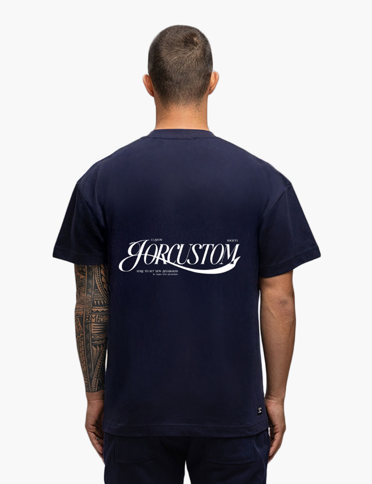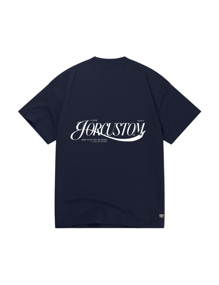 Het design is minimalistisch maar krachtig: op de rug schittert het iconische JorCustom-logo in een elegante scriptstijl, vergezeld van de boodschap “Here to set new standards”. Gemaakt van hoogwaardig katoen, voelt het shirt zacht aan en blijft het lang mooi. Combineer 'm met een jeans of bijpassende shorts voor een moderne look met karakter.