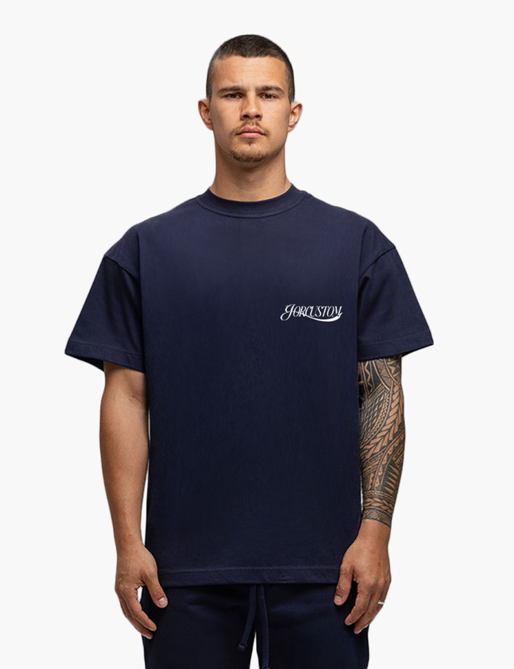 Geef jouw streetwear-stijl een upgrade met de Script Loose Fit T-Shirt van JorCustom in tijdloos navy blauw. Deze tee is het perfecte statement-item voor elke fashion-forward garderobe. De comfortabele loose fit zorgt voor een relaxte uitstraling en ultiem draagcomfort – ideaal voor zowel casual dagen als gestylde avonden.