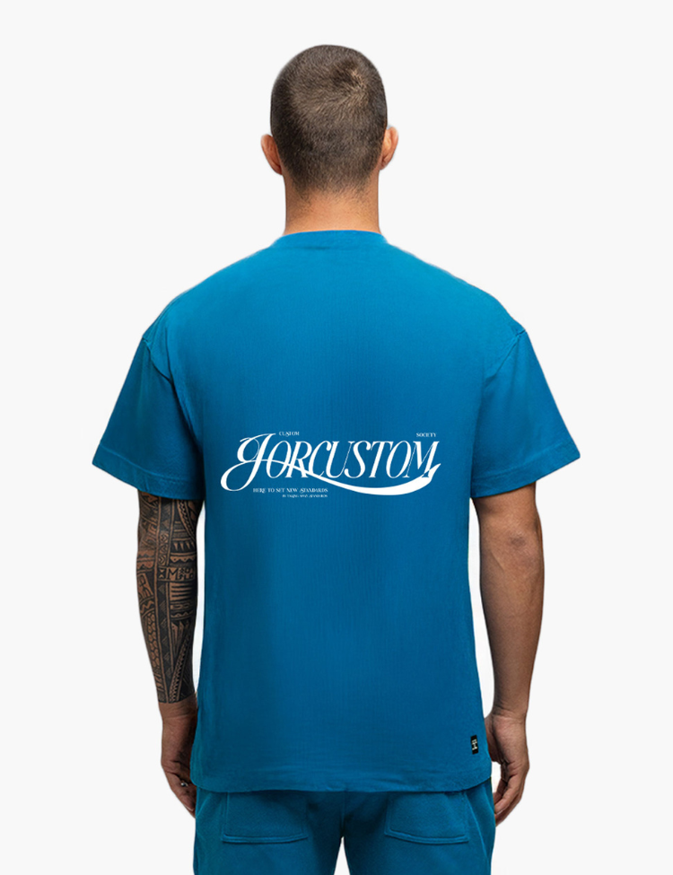 Gemaakt van hoogwaardig katoen met een zachte feel en voorzien van een iconisch, groot JorCustom-script op de rug voor een krachtige visuele impact. De kleur petrol geeft de shirt een frisse, zomerse vibe die makkelijk te combineren is met een denim short, cargo pants of een jogger.