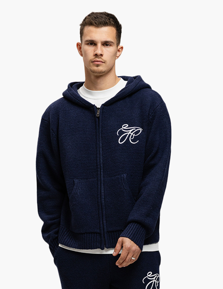 JorCustom Signature Knitwear Zipped Hoodie - Navy